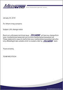 Due to an unforeseen technical issue MEDITECH url has now change from www.optimapharmaceuticals.com to www.meditecpharmaceutical.com These statement is issue to clarify that www.meditecpharmaceutical.com is the only official/legitimate website which is created under by MEDITECH team.